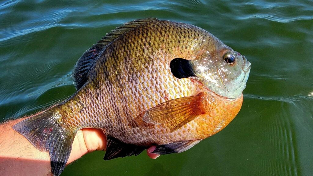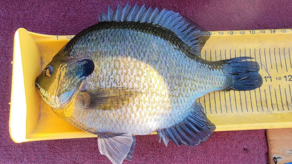 This summer offshore program with small leeches on under the radar lakes is a productive strategy that produces some pie plate proportion bluegills for Scott Mackner. Remember selective harvest by releasing the top end male bluegills in particular because these big fish guard the nests and pass on their genetics. Keep the more numerous 7–8-inch bluegill for the table and release the 9–11-inch bluegills to sustain these special fisheries.
