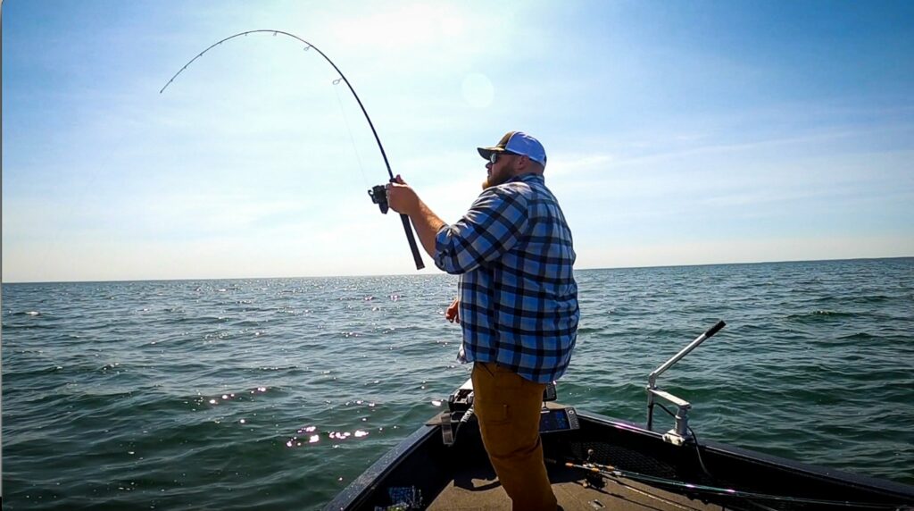 What we learned was super cool and out-of-the-box. While a lot of anglers are fishing smaller soft plastics that look like minnows, leeches, or ‘crawlers, as well as live bait—McComas does something entirely different (and unexpected, honestly) to tap mid- to late-summer ‘eyes.