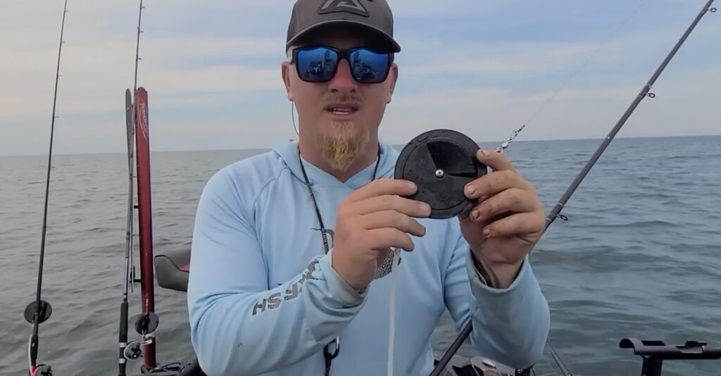 The Shimano Dakota is Max’s go-to reel for this setup. It has a 3:1 ratio (for every reel rotation, it brings in 3′ of line) versus the 2:1 ratio of traditional trolling rods. This helps bring the line in faster.