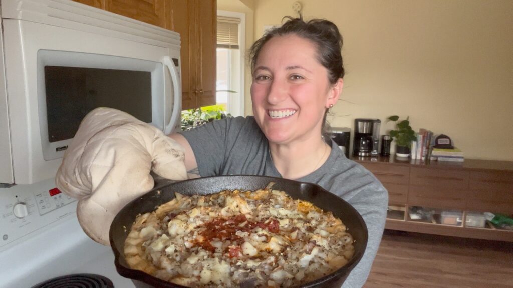 Add mixture to a small cast iron pan or other heat safe cooking receptacle. Spread fish mixture over the top of the cheese mixture. Create a small well in the center of the mixture. Add the bruschetta to the well. Sprinkle flaked parmesan overtop. Add some salt, pepper, and squirt of lemon juice around over the top of everything.
