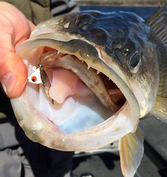Back to vertical jigging. The key is to maintain contact with bottom and limit your movements to small pops only a few inches off the bottom. You want the walleyes to feel and smell the bait because given low water visibility in most early-season river scenarios, walleyes are not sight-feeding.